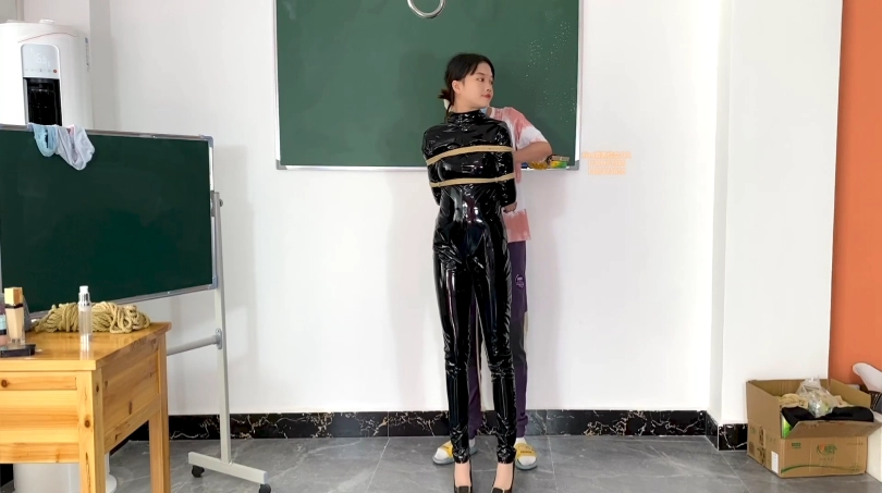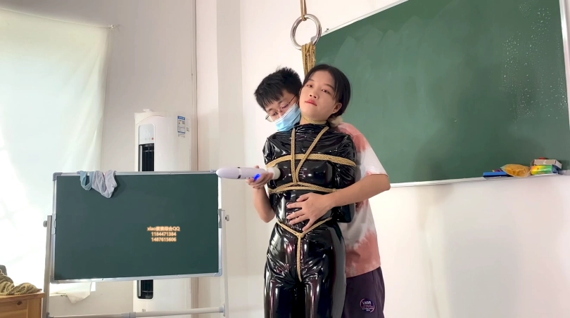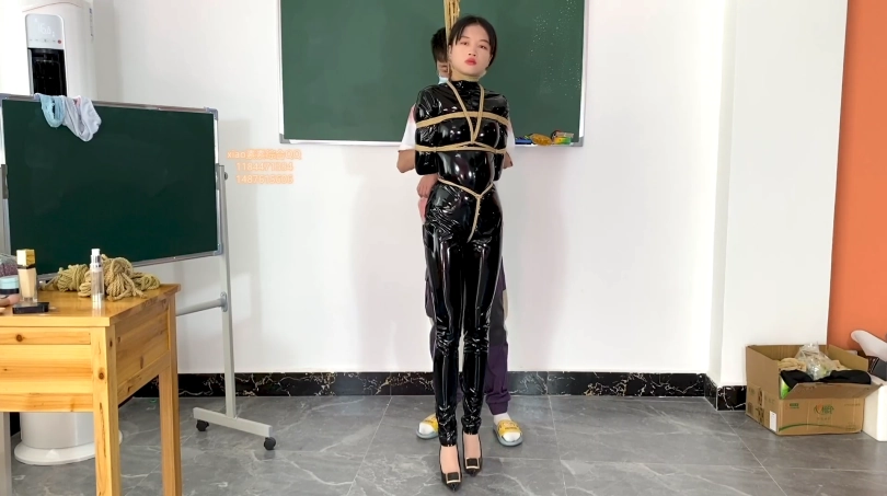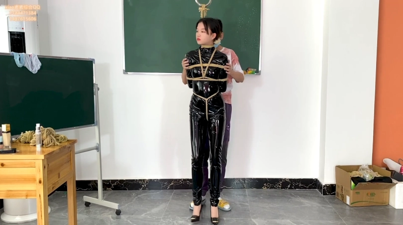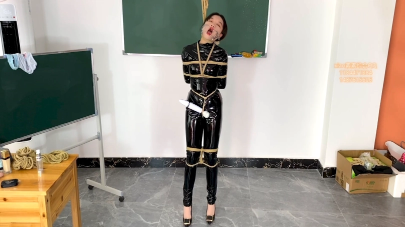 【xiao素素】亮皮衣捆绑开口器放置挣扎