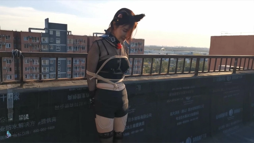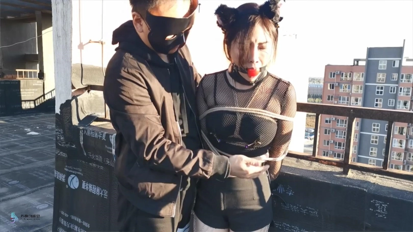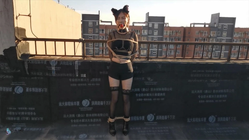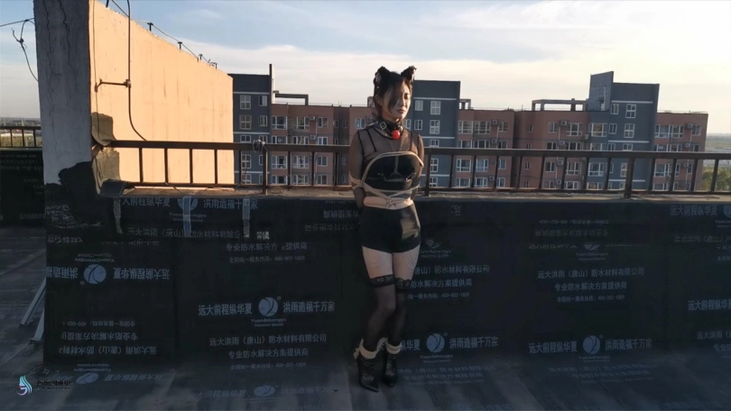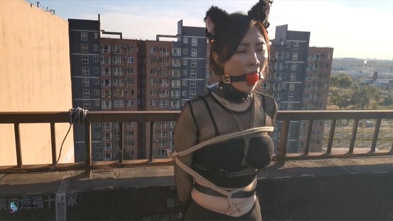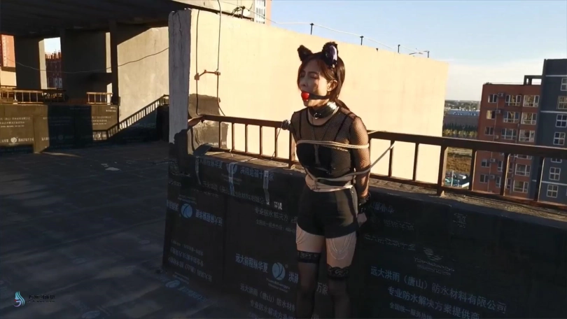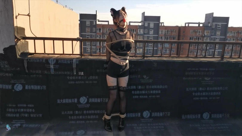 【JS】嘉莉 露台上的猫女郎 股绳口球堵嘴口水直流跳D刺激