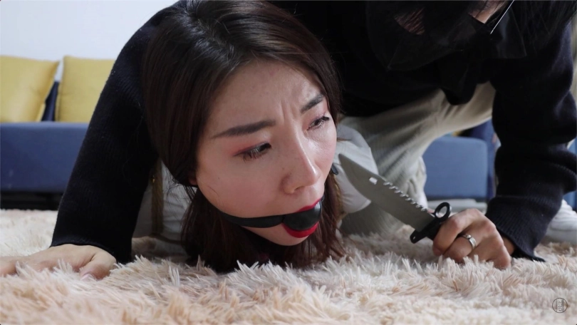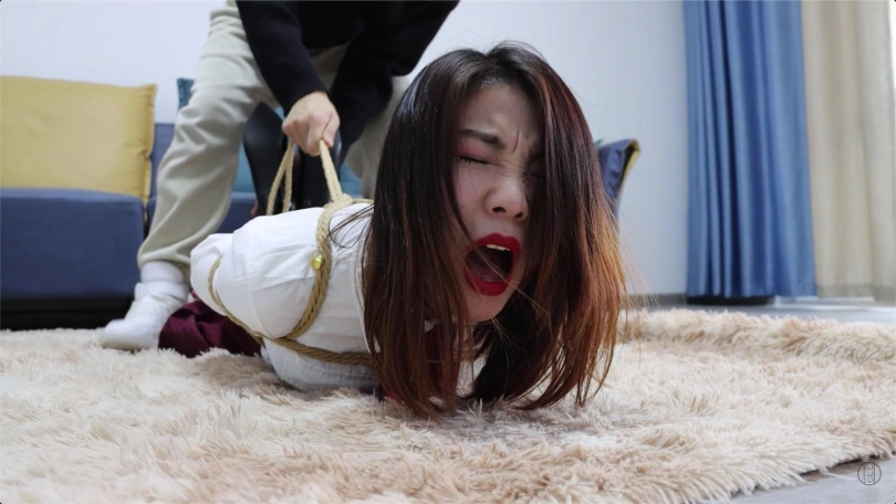 闲话说的不少,下面开始介绍剧情:一把锋利匕首抵着含含的脖子,凭她只要动一下,很可能就会危及到自己的性命!含含的上半身已经被人贩黑子用麻绳捆绑地结结实实,套着黑色丝袜与长靴的双腿不停地抖动着,想要寻找机会脱身。她不停的喊着,“放了我吧,求你放了我吧,求求你了!”,但都无济于事。黑子此时开口,“别说话,给我消停点。老实点,别给我乱动”,随及从腰中掏出一捆新的绳子,先绕着含含的腰上围了两圈。含含似乎意识到了什么,拼命的挣扎与尖叫。黑子将绳子的一端从含含的身后直接穿过胯下和酒红色短裙,再与腰前的绳子相连结,紧紧捆在一起。下面的绳子不停来回摩擦着,令含含即害羞又控制不住地更加来回扭动自己穿着黑色包臀丝袜的双腿…