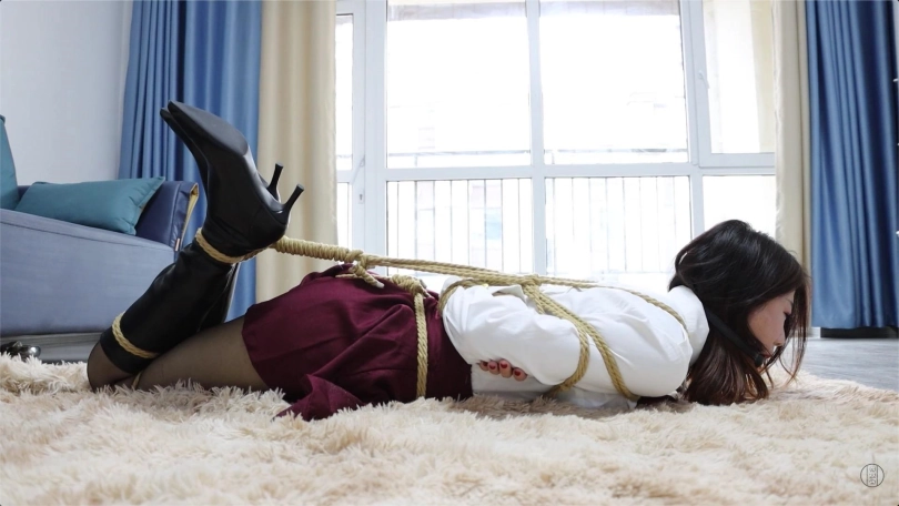 黑子将上半身捆绑好的含含放在了地上,开始捆绑她的下半身。“你到底想怎么样?!”,“怎么样?哼哼,一会儿你就知道怎么样了!” 黑子将含含以驷马的方式拘束好后,“这下你就乖你多了,还有你这张嘴...”,黑子拿来一个黑色的实心大口径塞口球,含含刚意识到什么,想说些什么,就被黑子用塞口球将小嘴严实地堵了起来!“哎我看看,果然是堵起来顺眼多了。让你废话那么多,现在我去办事啊,等我回来的时候,那时候你也没什么利用价值了。我再把你卖掉...”,含含听到这里惊恐极了,她不知道自己未来是怎么样的,想说什么但因为小嘴被堵上了,只能不停地发出“嗯嗯,嗯嗯”的呻吟声。
