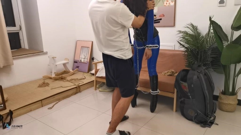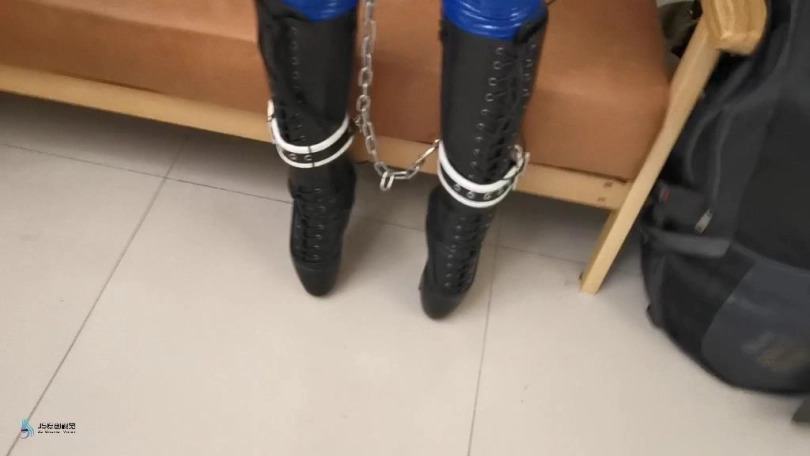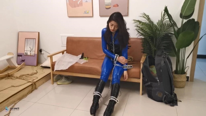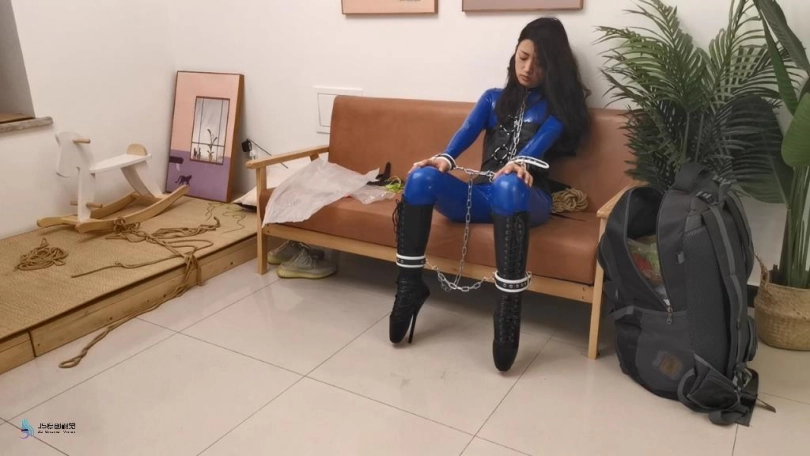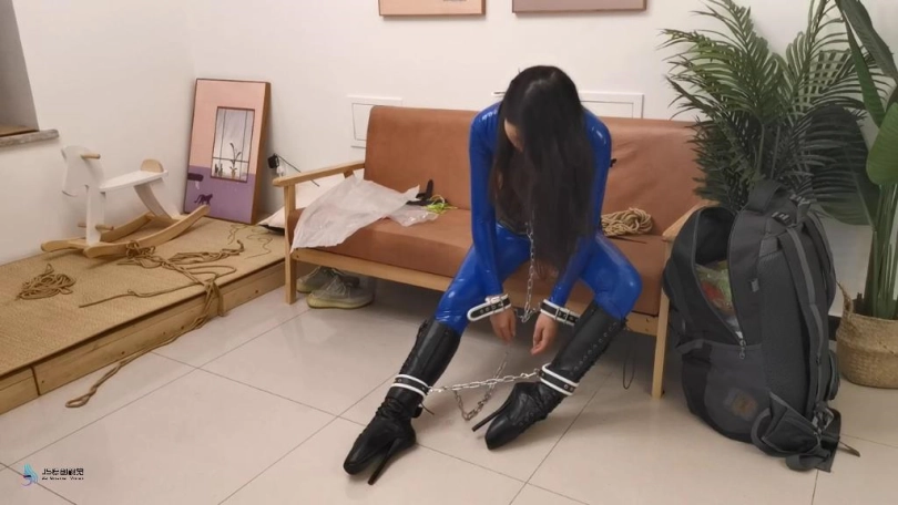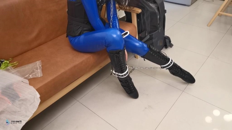 【JS】【艾可】蓝色胶衣皮革束缚镣铐缠身芭蕾靴