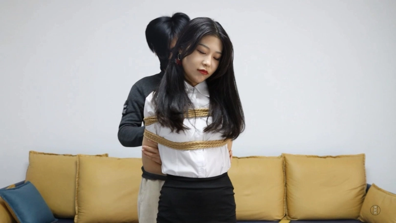 剧情的思路来自于十几年前千丝万缕的《受罚》,公司的老板让办公室的秘书去客户那里送一份很重要的文件,结果秘书弄丢了,因为经常被老板绑起来玩弄怕受罚就像老板隐瞒了这件事。结果老板接到了客户的电话才知道这份文件没有送到,于是叫来米娅质问,她还想跟老板撒娇抵赖,惹得老板非常生气,决定把米娅绑起来惩罚。米娅被日式单脚吊了起来,老板开始挠她的小脚,小秘书痒得不行开始求饶,老板说饶了你也可以,不过得玩一个游戏,赢了就放了你,输了要把你另一只脚也吊起来。然后老板拿一只丝袜塞进了小秘书嘴里,然后再用一个红色口球勒紧,说你能在5分钟内把丝袜吐出来就放了你。米娅很努力的尝试了5分钟,口球勒在外卖呢根本吐不丝袜。于是老板把她另一只脚也吊了起来,米娅被完全悬吊了起来,老板继续TK米娅的小脚,米娅吊在空中没有任何躲避的空间。老板玩够了,很满意米娅的表现,说要给米娅一个小奖励,敬请期待下集。