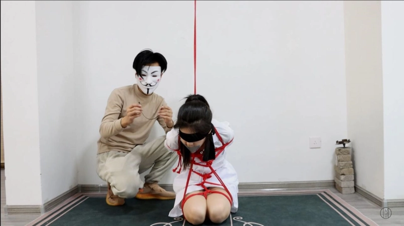 【绑架科普,五感封闭,真实原味,红绳白衣,连手指都不能动的极致束缚。】