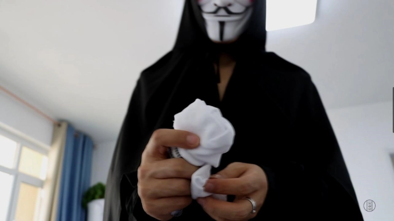 正要开门下楼的她在门口撞见了一个男人,男人带着V字仇杀队(思想是杀不死的)的面具,将她压制到墙边,还未等那句救命喊出声,男人的手掌便将她的嘴捂住,制裁的拳头悉数锤在她的腹部,令她切实感受到了现实的痛苦。