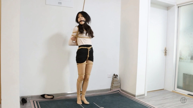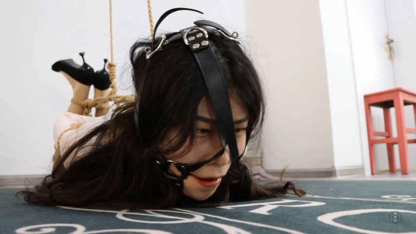 老板打电话叫小秘书来他办公室一趟,来了之后也没多说话,指着桌子上一瓶饮料让她先喝点水,然后小秘书问老板有什么事啊,话刚说完就晕倒在了沙发上。。秘书慢慢醒来,发现被驷马捆绑,背后的驷马牵引绳用绳子拉到横梁上,马具口球堵嘴,非常惊恐的挣扎,过了一会老板进来,拿着鞭子打小秘书,说你知不知道我为什么绑你,小秘书使劲摇头,老板说那你就在这好好想想吧,我来帮你想想,然后拿一个毛刷刷她的脚心,还鞭打她屁股。把她折腾一会后老板拿下了口球,秘书向老板求饶,老板说以前还以为你就是办事马虎点,谁知道你还挺聪明的,挪用公司这么多钱,这就是证据。秘书跟老板道歉,求求放了她。老板说我放了你你早就跑了还会还钱吗,得多折腾你一会。然后老板把她直立踮脚吊起来,说把你吊在这罚站,让你自己好好反省一下,米娅还会被老板怎么折腾呢,敬请期待下集。