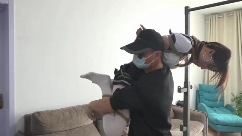 (期间用口球将珊珊的嘴巴堵上。)