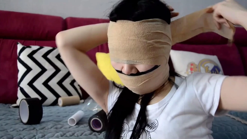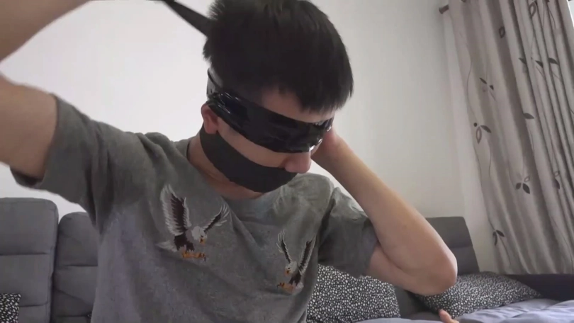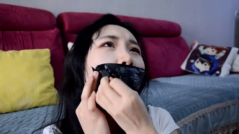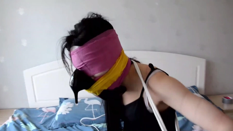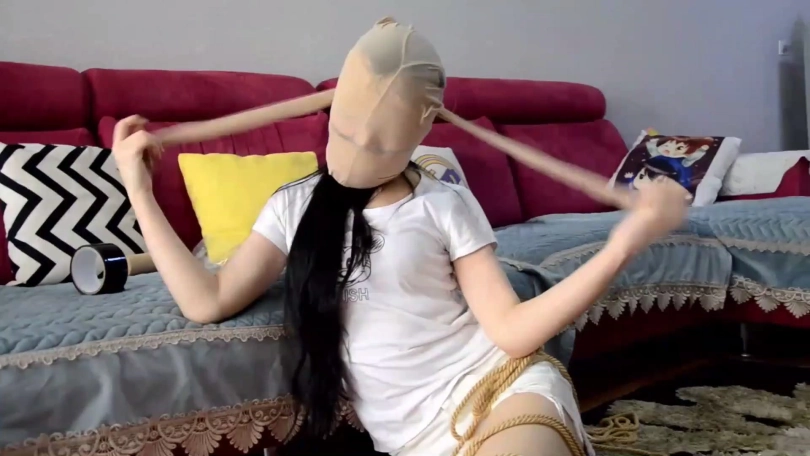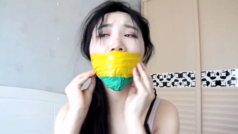 (二)与表姐打赌被骗惨遭严厉捆堵的吴晗经过长时间挣扎弄松绳结,解除套头原味臭肉色裤袜以后撕掉封眼绷带与胶带,一点点撕掉封嘴绷带胶带以及嘴外的黑色宽胶布,拽出口中两条表姐的原味内裤(一条黑色一条紫色),愤恨不平咒骂表姐竟然欺骗自己还把脏内裤塞自己嘴里,臭裤袜套自己头上,随即开始给双腿解绳子。