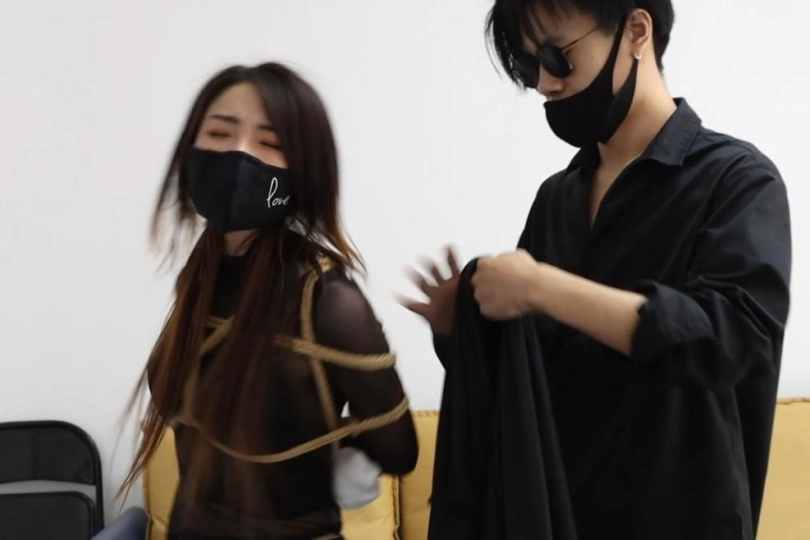 【逍遥】《伪装拘束真人版02》发现被密集捆绑的美女让男人起了歹心 于是被加固捆绑 可怜的美女就这样又被伪装拘束倒卖了~