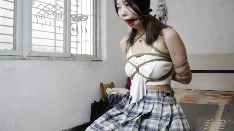【子衿】小美五花大绑口球流口水 驷马捆绑 放在房间里独自挣扎
