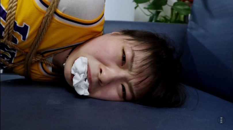 星宇被绑在椅子上,用绳子将双脚都翘起来敞开大腿,军哥在直播中扒掉了她的鞋子,露出了早已踩脏效果十足的原味白棉袜,星宇吵着让大家别看她的脚,但这并没有什么用处。