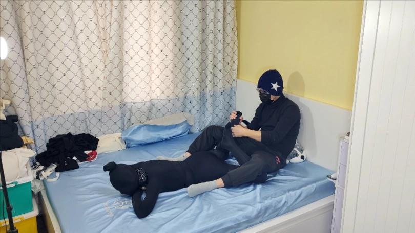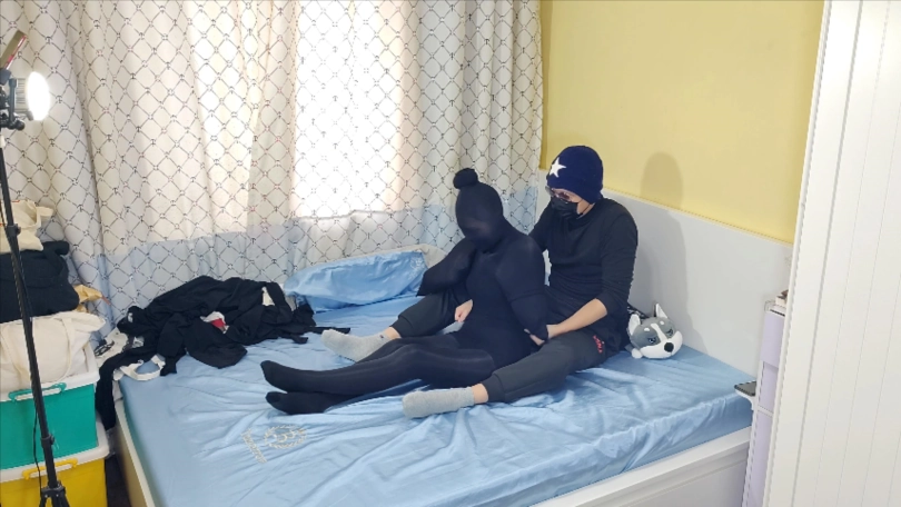 妹子定拍在家玩丝袜全包,分别用黑色和肉丝亮裤袜全包,然后练习柔术体术,然后被183猛男用很多超紧黑色/肉色厚丝袜完美包裹,无情的厚实亮黑丝袜来回单手套全包外加超紧丝袜睡袋,妹子力气小撕不开,按摩调教,难受,,[X_X],尿床,满脸难受。带妹子夹子语音,挣扎铃铛声,长时间无助挣扎最后没有力气躺尸放置!