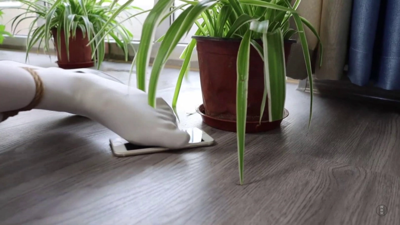 虽然上次尝试逃跑以失败告终,但是南羽还是不死心,这次又被换了一身衣服,趁着吃饭的机会还是想尝试逃跑,偶然在地上发现一部手机,又燃起了一点希望,努力挪到手机旁边,几番尝试发现手机根本没电,只能准备挪到窗户边向外呼救,希望有人能注意到她,然而事与愿违,坏人正好回来了。坏人为了惩罚南羽,把她绑成欧式驷马后用一根绳子固定在横梁上,用南羽自己的棉袜堵住嘴再透明宽胶带缠住,南羽的嘴都变形了。这种姿势下南羽挣扎了很久然并卵,最后只能绝望的放弃了挣扎。。。