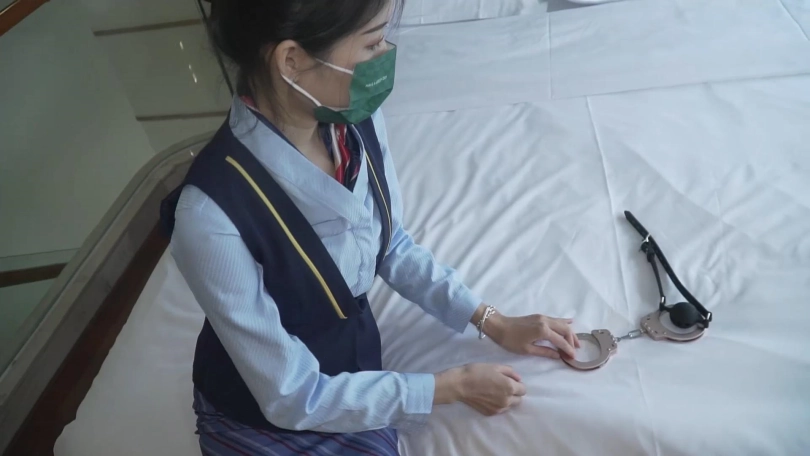 【得意客】气质空姐下班后感受新道具金属镣铐+口球