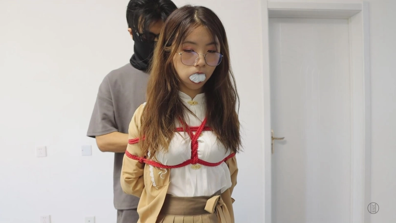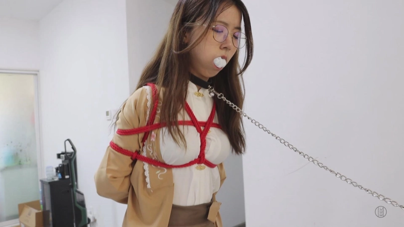 第二项淑女训练则是无论何时都能维持稳重的耐力,为此,先生请小姐自行脱掉鞋袜,小姐意会到了先生的目的,便十分自觉的将刚脱掉带有微微汗味的白棉袜塞进嘴里,而后被绳子绑成了驷马。