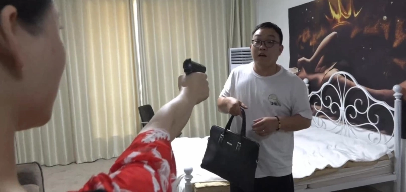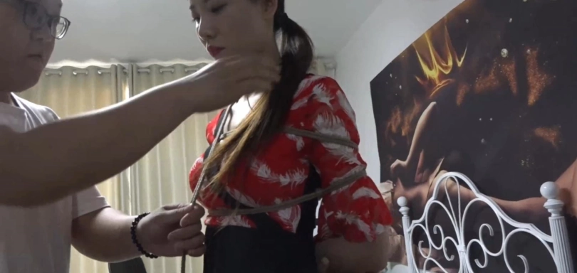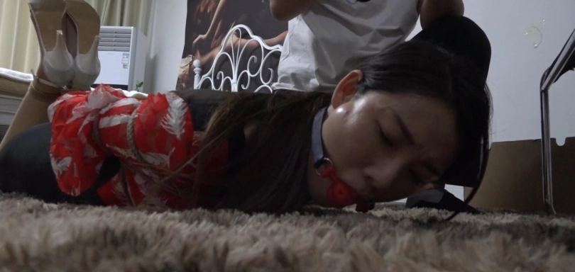 (我个人是很喜欢这部的,男主有种本色出演的感觉,丝毫没有表演的痕迹哈哈,而这件衣服也是非常喜欢的一件,柳洋姐穿起来也是很漂亮啊,这部剧情女主也是女警的身份,后来想着想着剧本就增多了起来,之前人质的身份也是女井,这部就按照人质第二部来拍摄吧)阿光是一名专业的小偷,对于自己的偷盗技术那是非常的自信了,每撬开一扇门便有一名幸运儿遭受阿光的洗劫,不过常在河边走哪有不湿鞋的。这不这天便溜进了一名女警官的家中进行偷盗,非常专业的不放过任何角落的翻着。突然她看到了房主的照片,照片中的女子身穿蓝色的警服。有人说女人像水,细腻绵长,润物无声;有人说女人像花柔柔弱弱,鲜艳美丽;但是有些女子的确与众不同,她们刚毅坚强,她们就是美丽的女警花。照片中的女子不乏女人的娇弱让人不免想要捧在手心好好的呵护,而那一身警装又为她增添了一分靓丽,变得英姿飒爽。(好了好了话有点多了,哈哈)阿光看到这心想,完了这次居然盗到了一名警察的家里来了,得趁房主未回来之前赶紧开溜。果然怕什么来什么,这不我们的女主就登场了。刘小萌因为上次成功的破案所以警局特地的给她放了几天假。刚逛完街回家,穿着高跟凉鞋,一身黑红相间的连衣裙。身为一名女井的她很快便发现家里进贼了,立刻警觉起来,摸出随身携带的手枪慢慢走进房间。阿光在知道自己进入到了一名女井的家中之后立刻准备离开,不过却刚好撞见了回家的刘小萌。阿光心里不禁心想:完了,看来这次得载在这娘们手里了~刘小萌看着眼前的阿光说:“你好大的胆子啊,居然连警察的家也敢偷。”阿光知道自己跑不了了,但是嘴上还是说着:“误会误会,这是误会~”刘小萌:“什么误会,把你手上的东西放下,蹲好~”(柳洋姐好凶啊,把我们的小偷先生吓得不敢说话了)阿光只能老老实实的蹲在地上。刘小萌拿着阿光的皮包说:“让我看看你到底偷了些什么东西。”阿光的包里什么都有,都是一些从自己房间偷出来的东西,不过她看到了几件有趣的东西,只见她从皮包下面还翻出了几捆绳子一双丝袜几捆纱布,一个塞口球和一个眼罩。看到这些东西她顿时来了兴趣,转过头对阿光说:“看来偷的东西还真不少啊,这几捆绳子干嘛用的,你是想抢劫未遂变为绑架吗?”阿光:“警官,都说了是误会了。”刘小萌:“误会,那好我给你一个机会,你可以用这些绳子将我绑起来,要是我挣脱了你就乖乖的束手就擒,要是挣脱不开,那我身上所有值钱的东西全部交给你。”(什么还有这种好事?我没听错吧)阿光有点怀疑自己听错了,居然这么嚣张,不过还是壮起胆子有些不相信的问:“你说的是真的啊?”刘小萌:“当然是真的,快点吧!”阿光:“你拿枪指着我,我哪敢啊!”刘小萌笑着把枪丢到一边,老实的将手背到了背后。阿光:“先说好,你不能打我,要是挣脱不开钱全归我,你也不能找我麻烦。”刘小萌:“趁我没反悔之前快点。我不骗你。”得到了她的回答阿光放下心来说:“那还怕啥了,你好等着吧!”阿光很快就将刘小萌驷马捆绑起来,拿起口球准备给她戴上,说:“戴上这个不介意吧!”(都捆成这样了,介意还有什么用啊)戴上口球眼罩之后,阿光得意的说:“嘿嘿,你就开始挣扎吧,你是绝对挣脱不开的。钱全部归我了。”将刘小萌捆绑起来之后阿光胆子也大了起来,便又开始进屋子里找起了东西。而被驷马捆绑的刘小萌也在不停的挣扎着,想着办法解开自己身上的绳索~