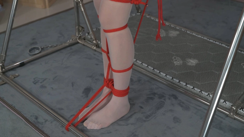 这个姿势实际程度要比看上去更难受,从妹子下来后背上膈出来的红印子便知,而且妹子刚拍了一半就想下来,害的绳师还得上去给按摩手臂。TK的时候妹子扯开喉咙近乎嚎叫,把绳师都惊着了,后来得知,聊天的时候妹子知道影棚装了隔音,放开嗓门了。