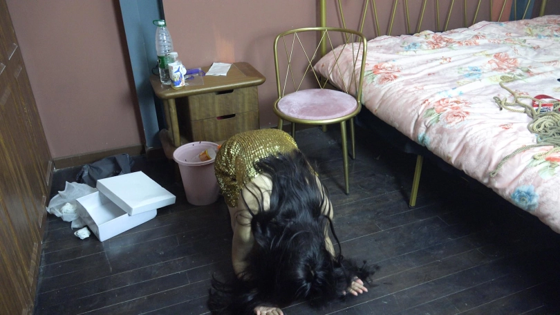 【子衿】主奴游戏-镣铐囚禁 磕头 跪爬 跳舞 人体桌子 给主人洗脚 按摩 小狗进食