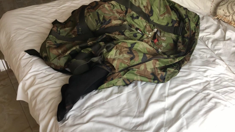 2、新购迷彩大背包,具体怎么背我也没弄明白,但是装小周是足够了