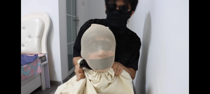 美女在家中遭到入室绑架,丝袜套头,胶带封嘴封眼,装麻袋,挣扎!