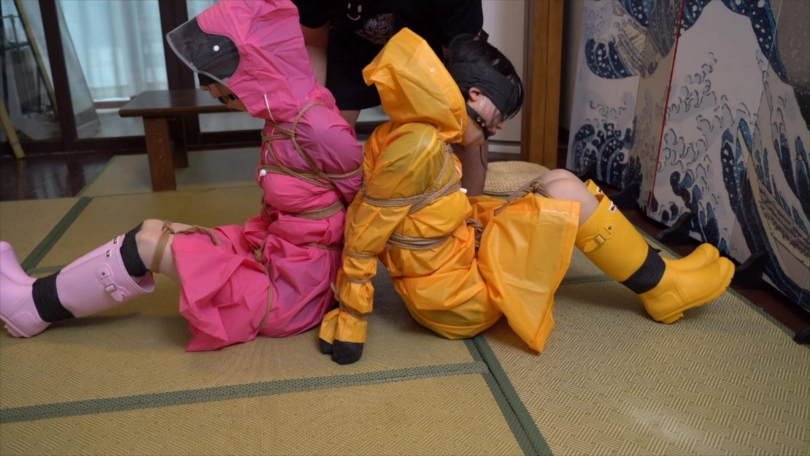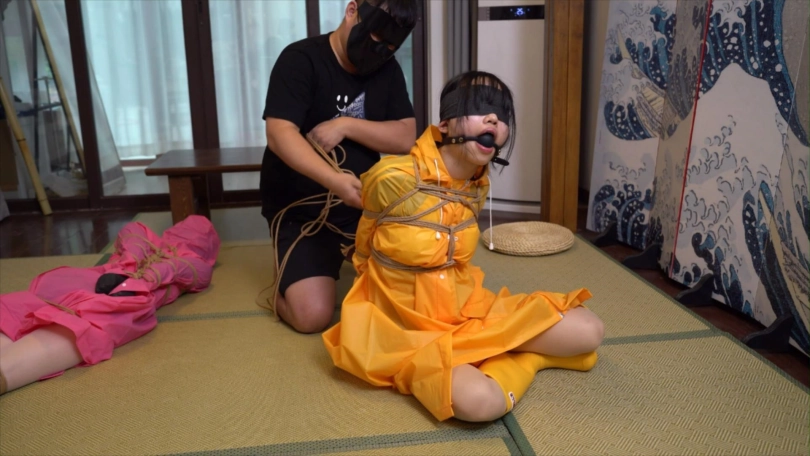 雨衣不防雨水,只能用胶带缠住她们的嘴巴。
