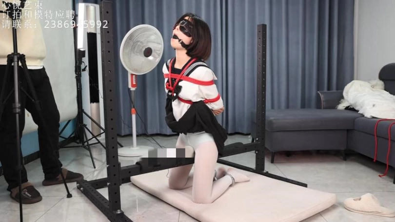 小萝莉的自娱自乐。日式后手嘟嘴蒙眼,脚上用脚铐限制在铁马上,横杆上贴着强力震动BB,小萝莉在自己努力的寻找gc。
