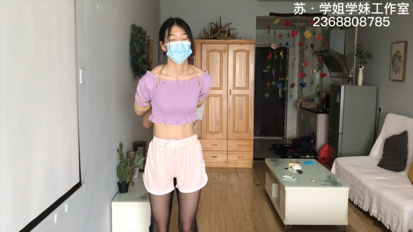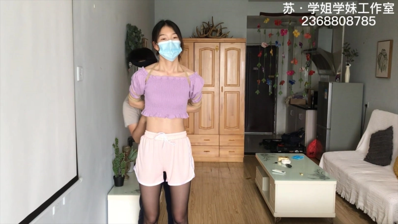 解语穿着黑丝运动短裤短靴露脐装,被来了个超紧五花驷马,疼的解语哇哇叫,最后软软赶来给解语松了绑。