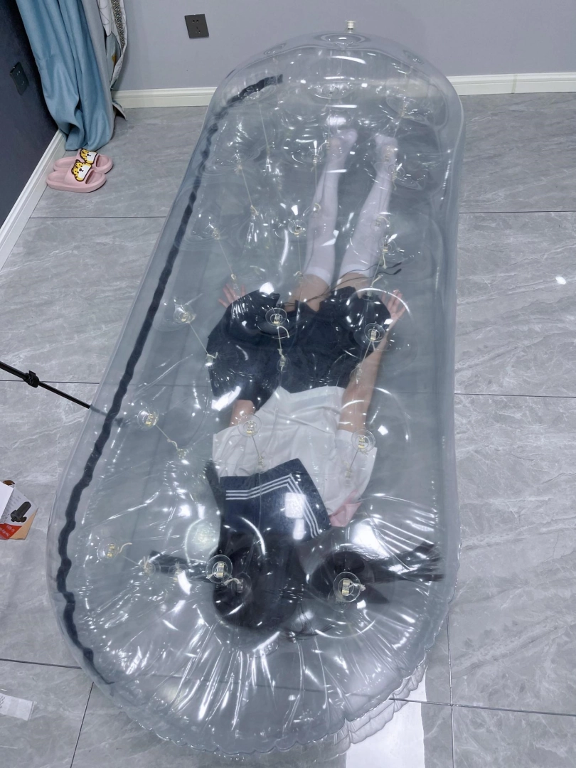 茶茶可爱的白丝小脚被气囊死死压住,拼命踢蹬着,却没有任何办法逃脱。透明的充气床让茶茶的挣扎的姿态完全展示在所有人面前,连 一点点遮掩的可能性都没有,羞耻程度拉满...