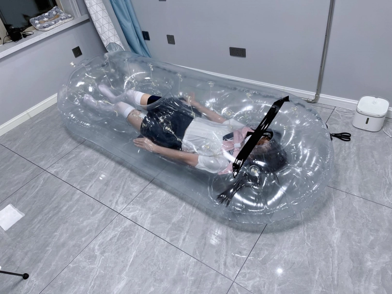 这种每一寸肌肤都被空气死死压住的拘束感让茶茶几乎有些沉迷,忍不住地在拘束中扭动,享受着拘束。但是当我告诉她我不准备放她出来后她就开始害怕了,挣扎幅度也从享受的挣扎变成恐惧中妄想逃跑。
