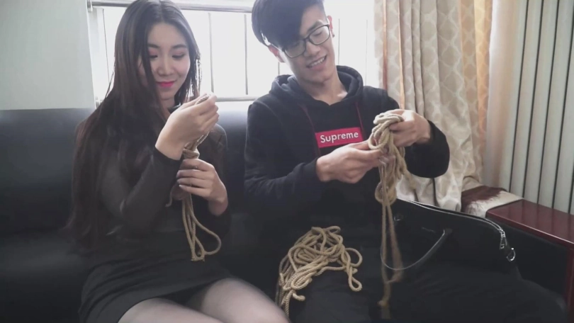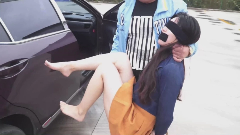 接着小张就被男子抱进了后备箱,然后男子又把小张捆成了驷马的姿势,这样小张只能在后备箱微微的挣扎和