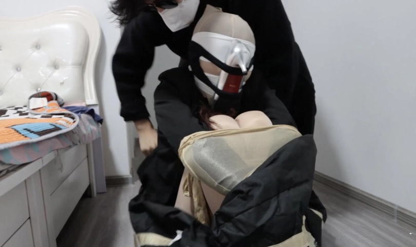 白领挣扎了一会,劫匪决定将白领打包或装箱,解开驷马,装箱姿势。最后劫匪喷了一些迷药在丝袜上,塞进高跟鞋套脸,白领慢慢不再挣扎,劫匪连同她的丝袜将她带回家好好玩。。。