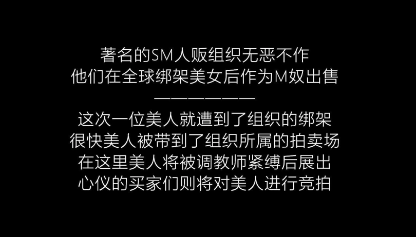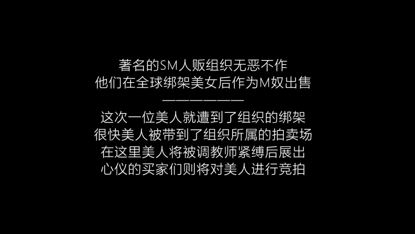 美人(柳洋饰)被人贩组织绑架后进行拍卖。她被调教师以一种奇怪的姿势紧紧绑缚在架子上,展示给一众卖家,期间被调教师各种玩弄。