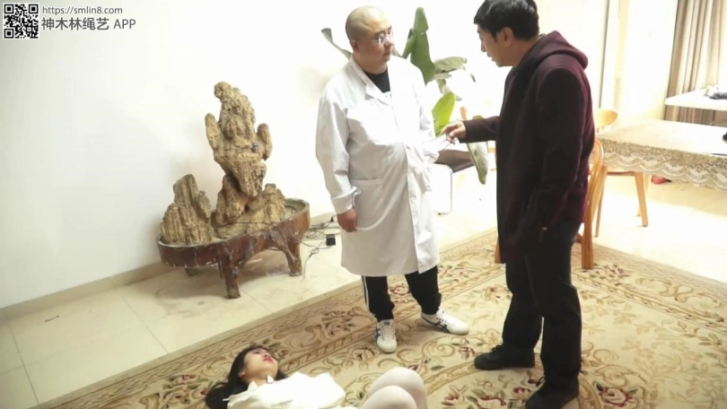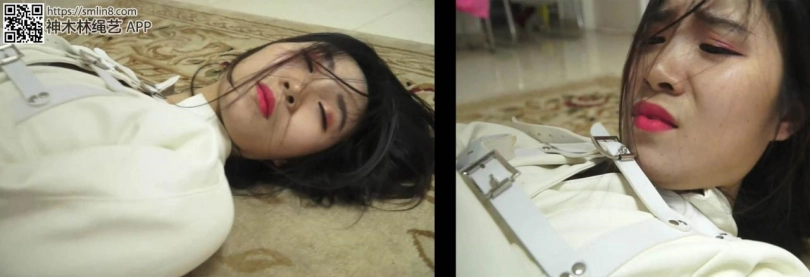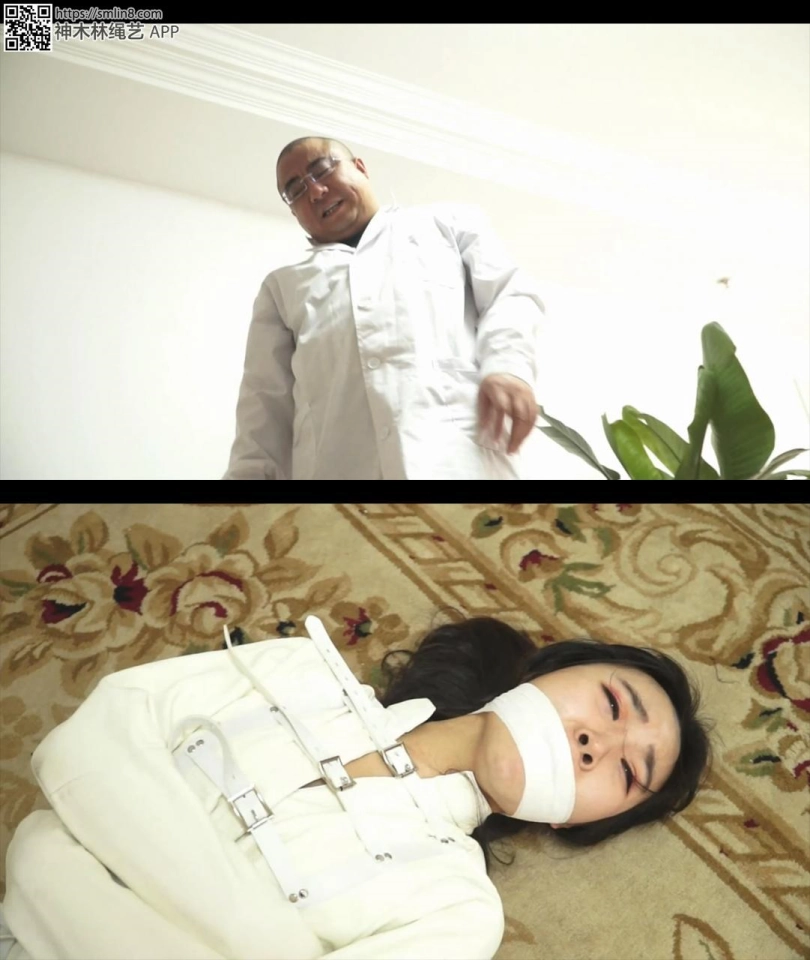 等她醒过来的时候,女警发现自己穿着精神病的拘束衣。丝袜被换了,腿还被折叠合并捆绑。