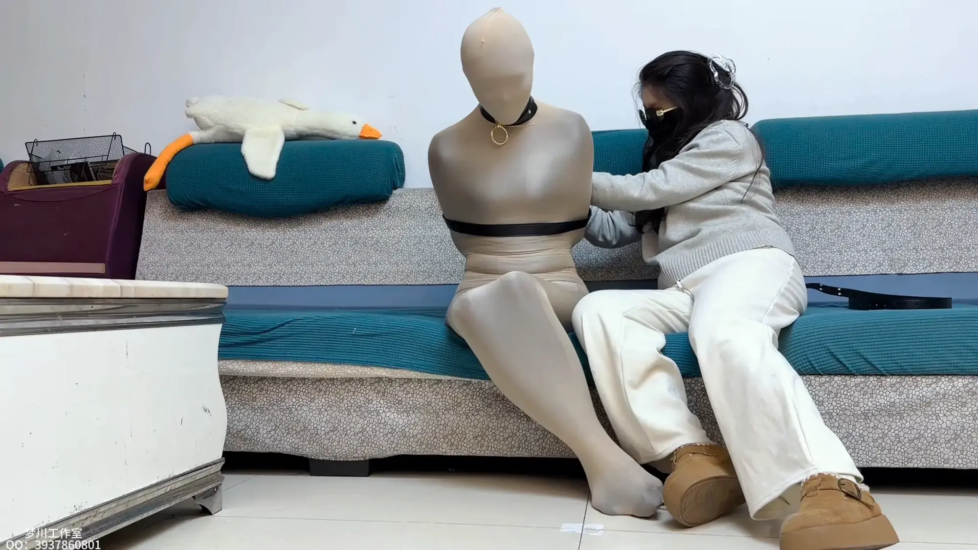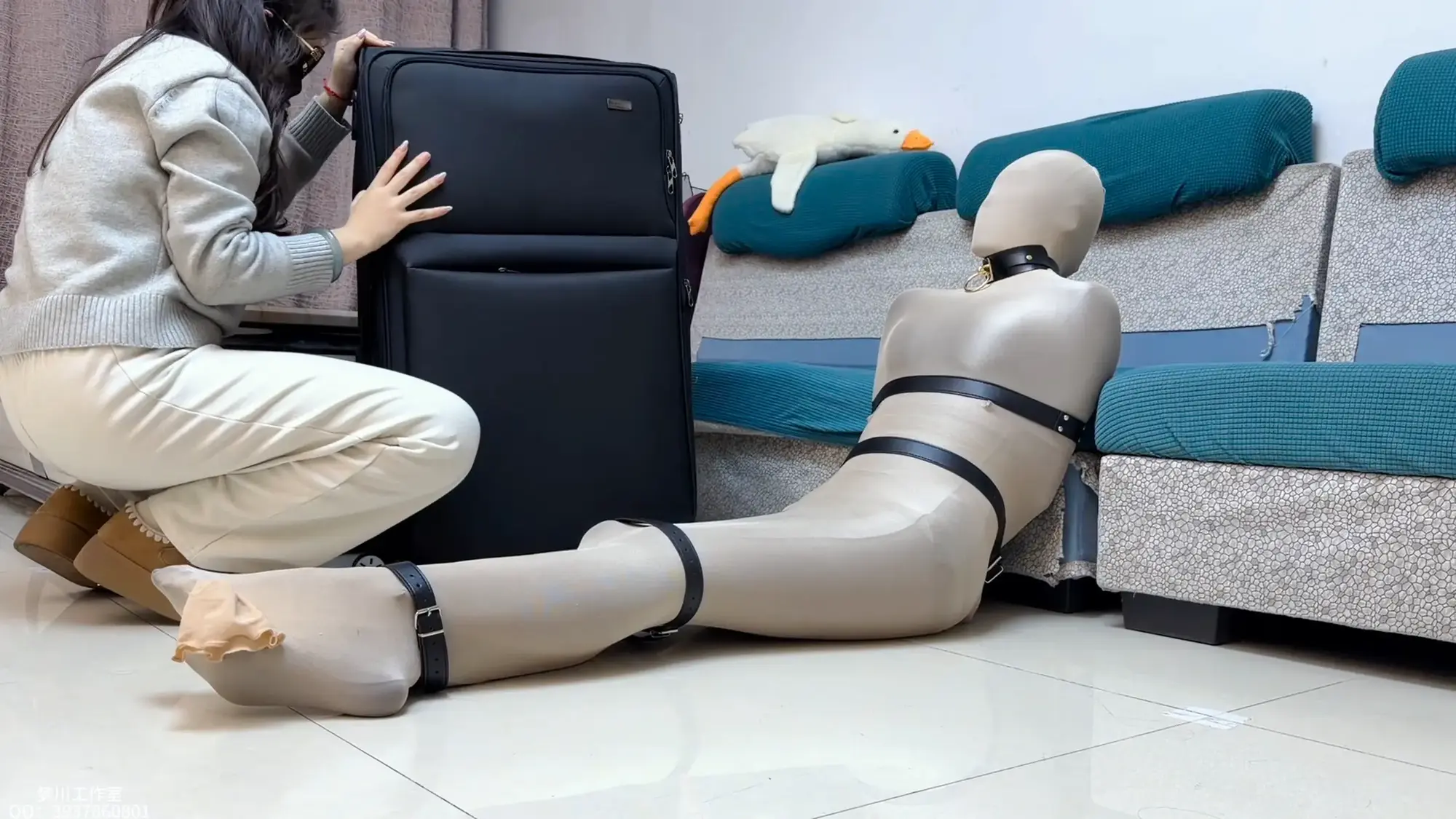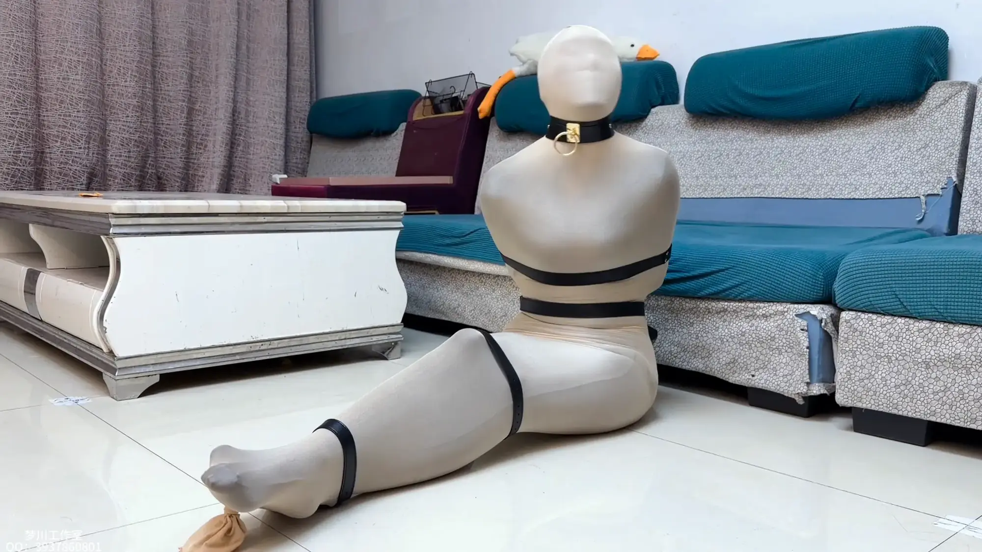 本集雯雯被黑肉双丝全包,再加扎带皮带项圈全面禁锢,绝望挣扎!