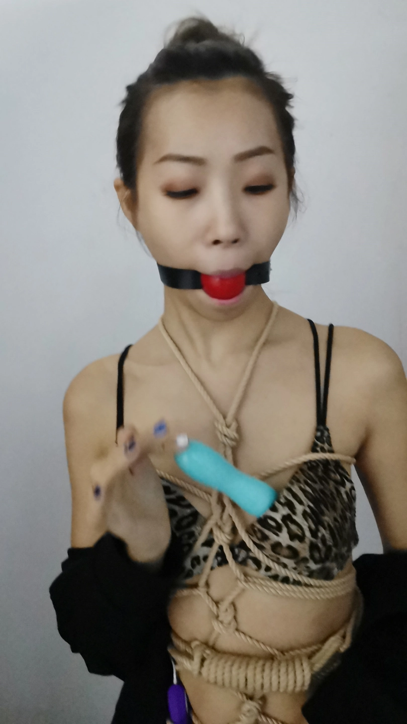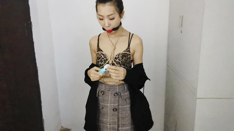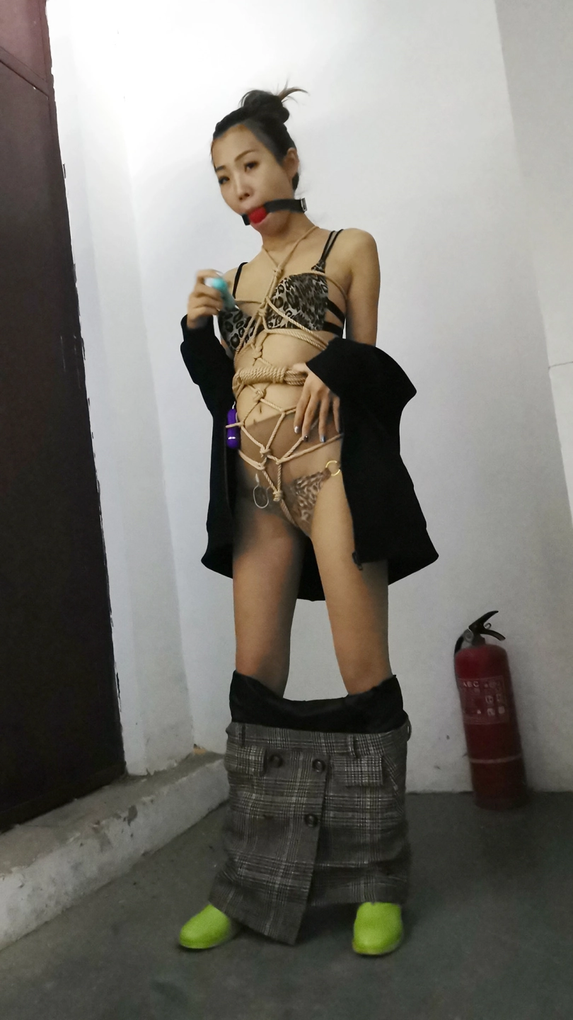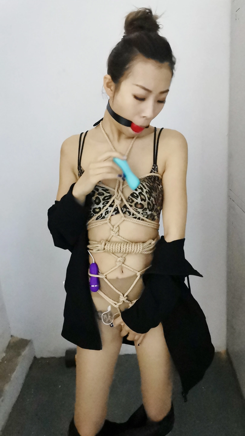 穿着性感豹纹内衣绑个龟甲,下面塞个小玩具,嘴里塞上口球外面带上口罩,在车上司机就不断的从后视镜像后看,路过一路口时又JC查岗,这时调皮的艾诺居然打开手机灯光照自己捆绑的身体,JC也成功的被车里的光吸引到,但好在没过来。下车后找个地方艾诺用小棒棒尽情的自嗨抚摸自己,嗯 真会玩。