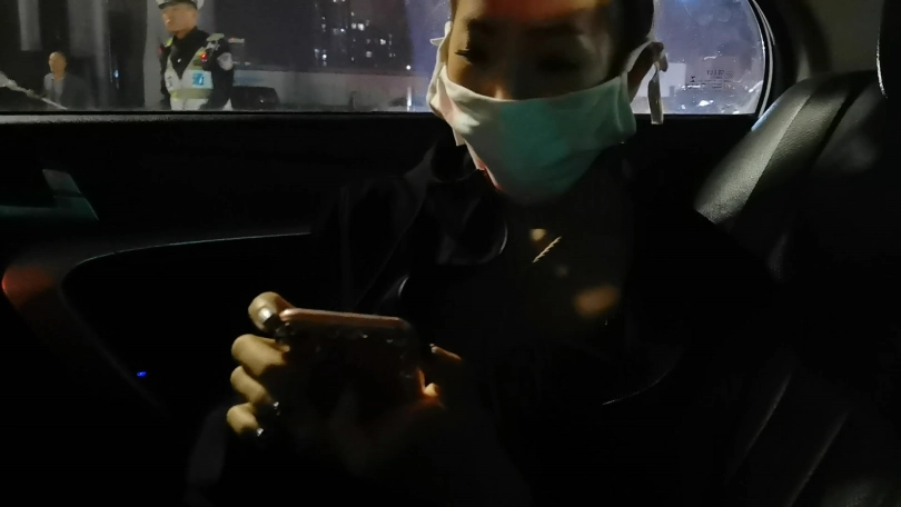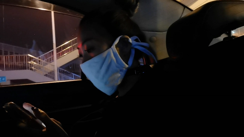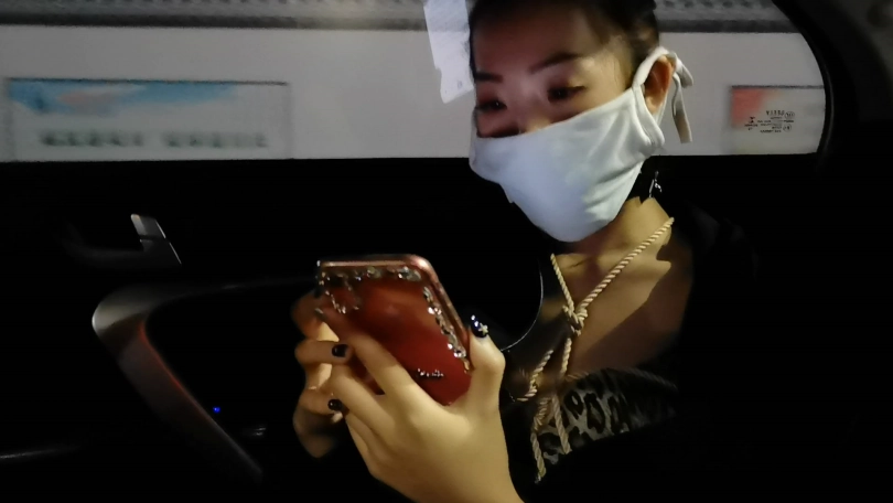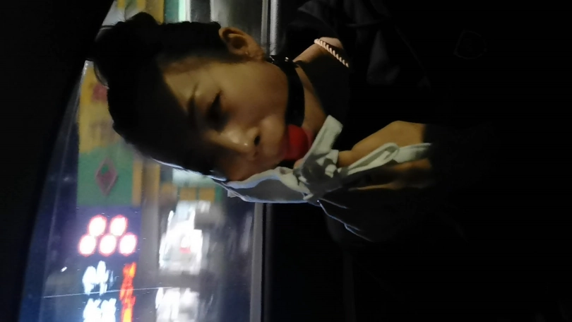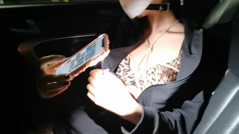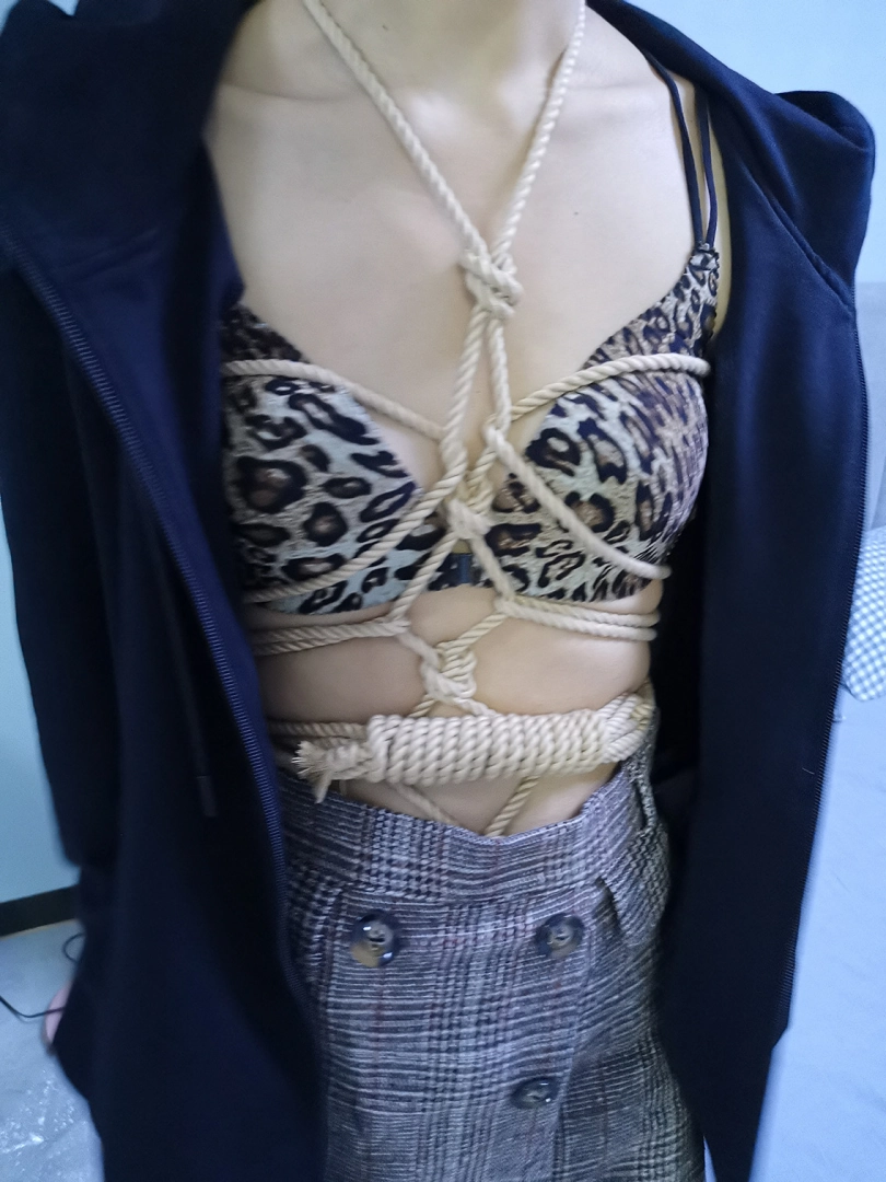 穿着性感豹纹内衣绑个龟甲,下面塞个小玩具,嘴里塞上口球外面带上口罩,在车上司机就不断的从后视镜像后看,路过一路口时又JC查岗,这时调皮的艾诺居然打开手机灯光照自己捆绑的身体,JC也成功的被车里的光吸引到,但好在没过来。下车后找个地方艾诺用小棒棒尽情的自嗨抚摸自己,嗯 真会玩。