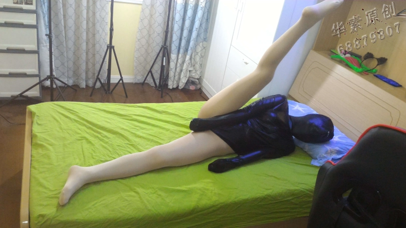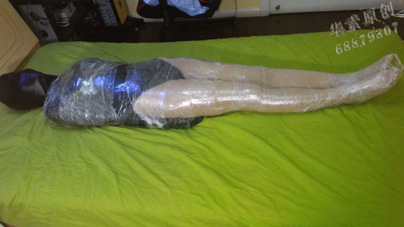 【华素】美女全包胶皮拘束衣+舍宾裤袜外加保鲜膜全包,舍宾丝袜全包保鲜膜的福利!