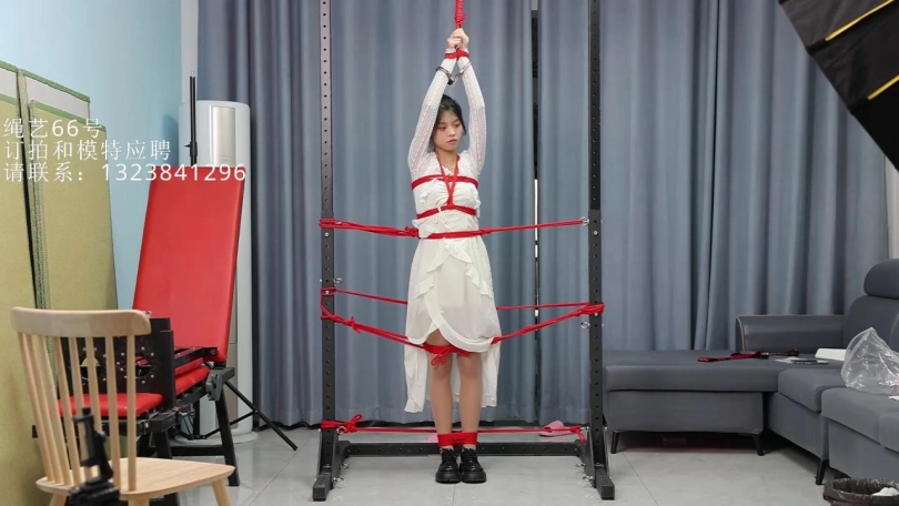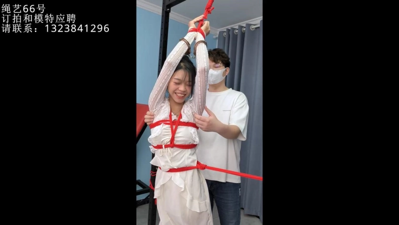 肉丝小仙女,门框内的人柱,吊缚双手,全身固定,没有任何一处关节可以移动。剩下的就是疯狂的TK了哈哈。