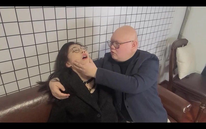 男主回来,继续把玩女主。他把女主拖到沙发上,把她搂到自己的怀里,感受着她柔软而又温暖的身体。男主摇晃着女主的身体,摆弄着她的手臂,但是女主还是一点反应都没有。男主让女主躺倒在沙发上,又掀开女主的眼皮,看见她还是目光呆滞,眼神涣散。男主说:“接下来玩点什么比较有意思呢?”男主拽着女主的手把她拉起来玩弄并合影,摆弄了一会女主的身体后满意离开,留下女主继续昏迷不醒。