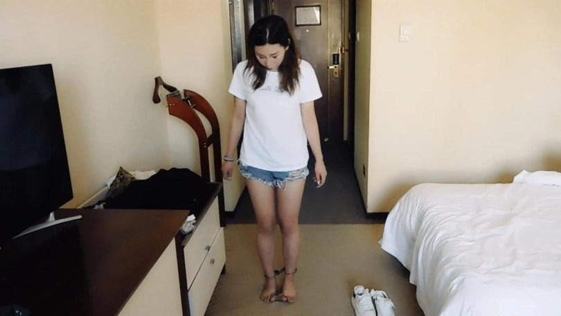 【趾间艺束】阿狸遇虚假的拍摄 自己戴上镣铐后才发现是抢劫 解不开了 手铐脚铐脚趾铐 休闲装袜子堵嘴
