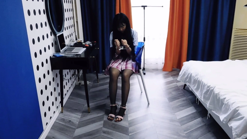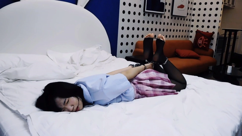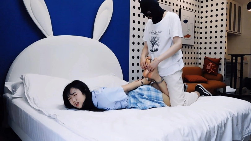 【趾间艺束】可爱女孩真实M猫猫镣铐挠脚心TK系列剪影2 手铐脚铐脚趾铐 口球眼罩跳D棒棒滴蜡一起上!!!