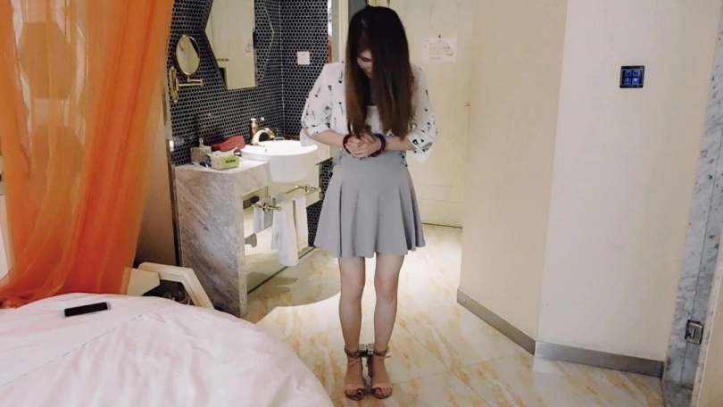 妹子是个毒贩,正在酒店里准备等着交易。这是警察破门而入,让妹子蹲下手抱头,询问姓名,寻找毒品。很快就找到了毒品,然后警察给妹子戴上了背铐、脚镣。妹子蹲在地上,一直不承认自己的错误,哭了,喊冤。警察十分愤怒,解开手铐锁在前面,脚腕戴上板铐,锁上链子脚趾铐。要求妹子走几圈,算作惩罚。妹子被迫艰难走路,十分难受。警察决定在送走妹子前,再惩罚折磨一下。解开脚趾铐,脱下高跟鞋,坐在床上,手背后锁上且连在架子上,脚趾锁上。妹子这下着急了,认错了,使劲求饶。警察决定挠脚心折磨一会,妹子很痒很难受。最后警察解开手铐,锁在后面,把妹子带走。