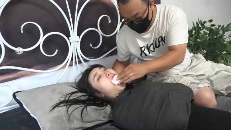 劫匪将美女包裹堵嘴离开,美女吴晗好不容易挣脱了一下开口马上就能自由,但这时同事来了,他误会她身上的都是医疗绑带是帮助她治疗的,结果又带美女的包裹加固了,可怜的吴晗气急败坏但根本没法传递到同事那里,可怜的美女因为意外的误会反而更加难以逃脱了。