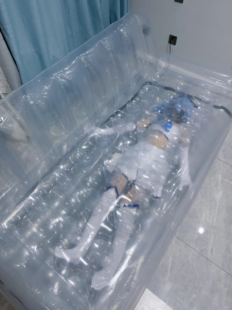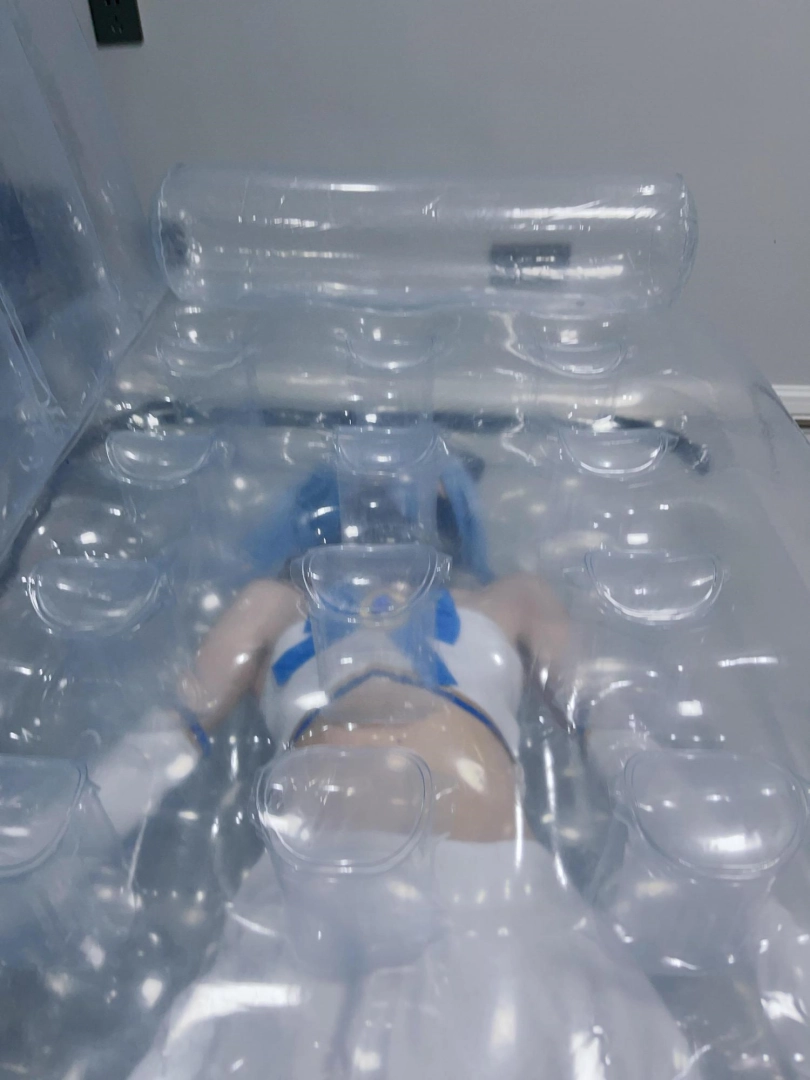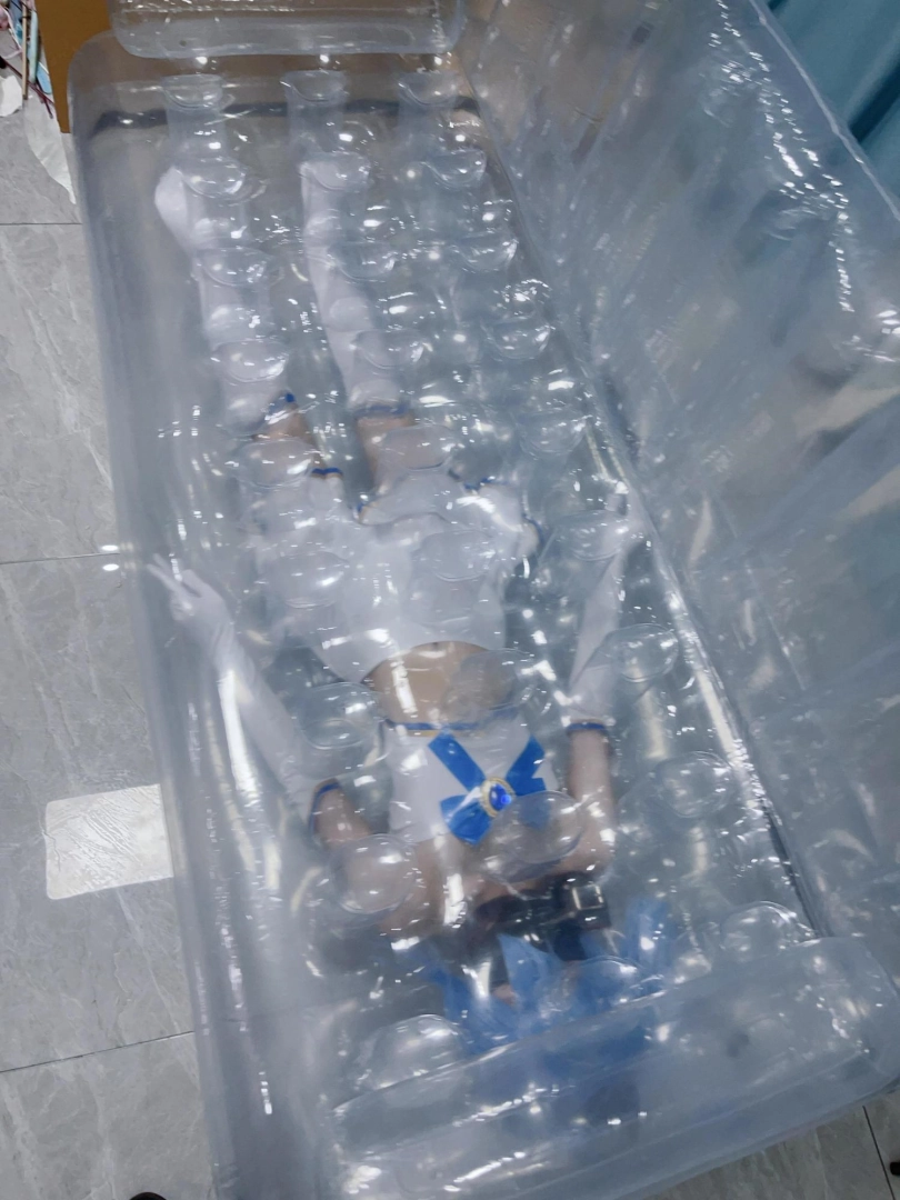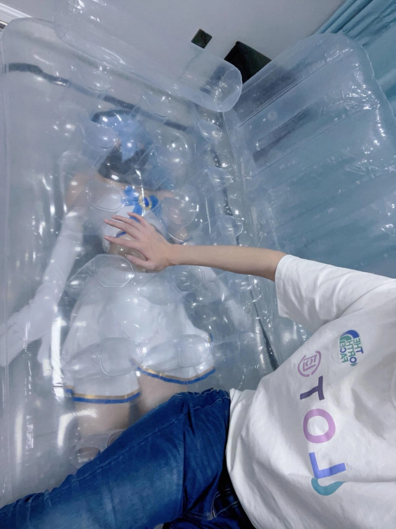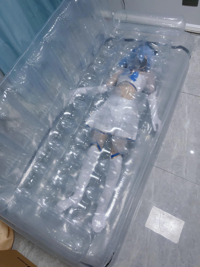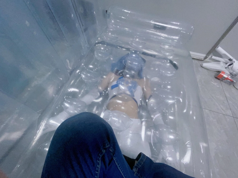 可怜的露娜酱就这样被封印在透明的充气沙发里,忍受着闷热、缺氧和充气拘束的压迫感,被人使用着。