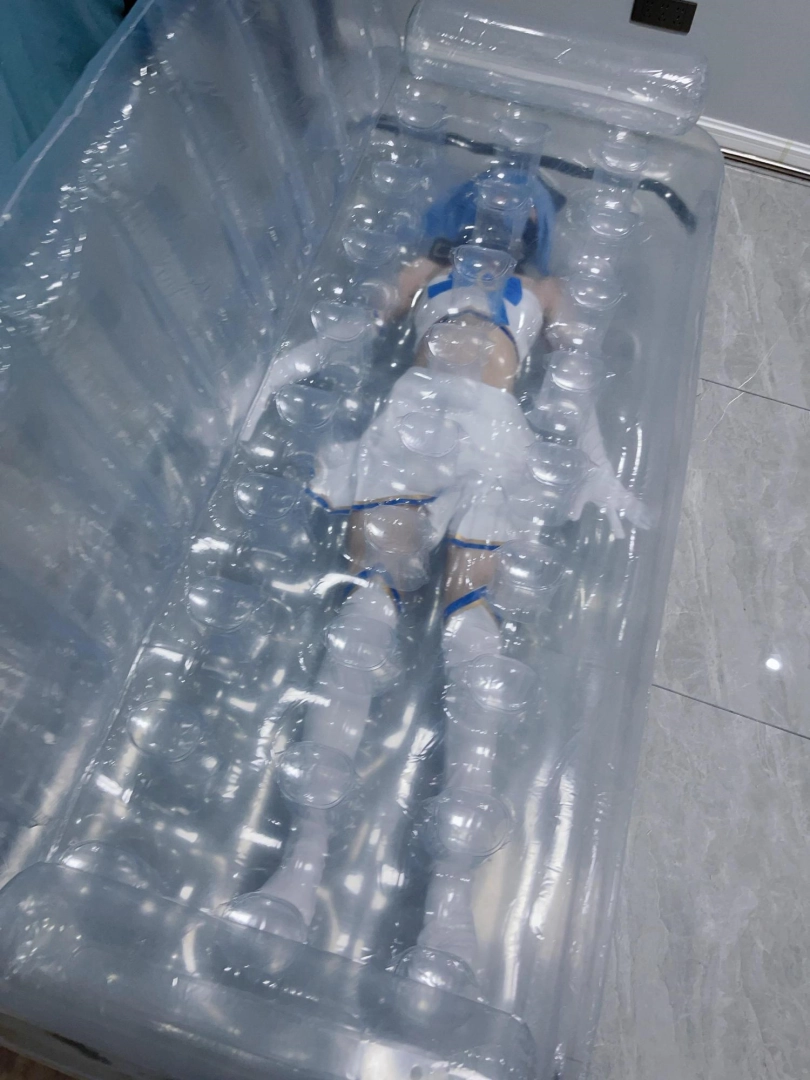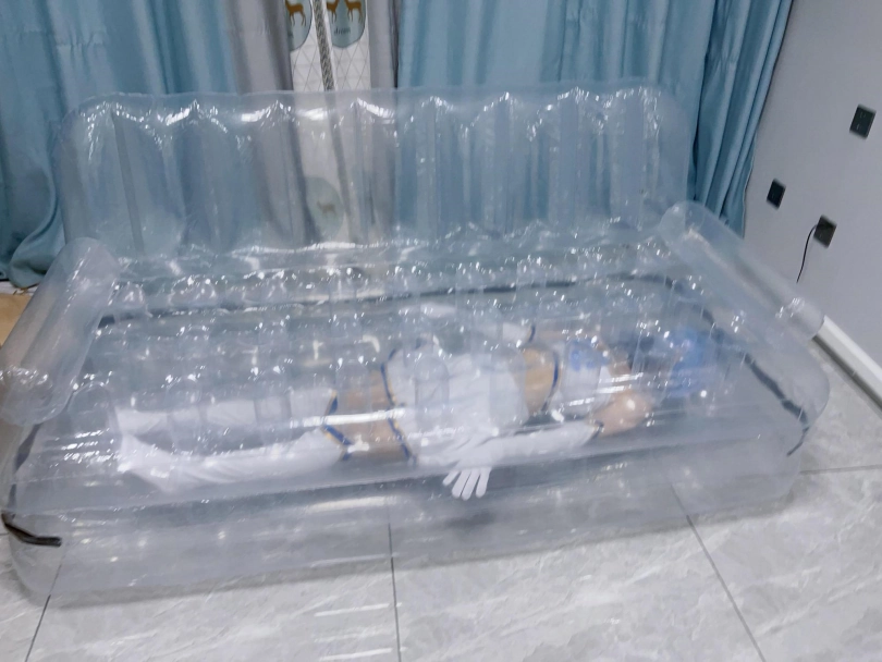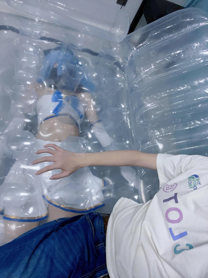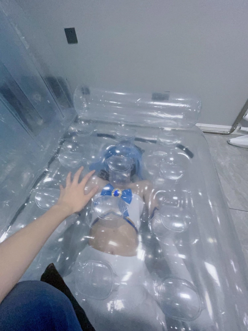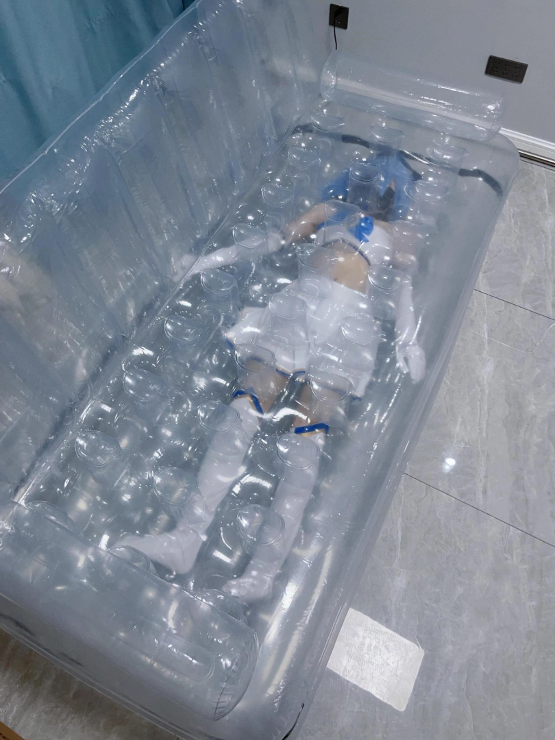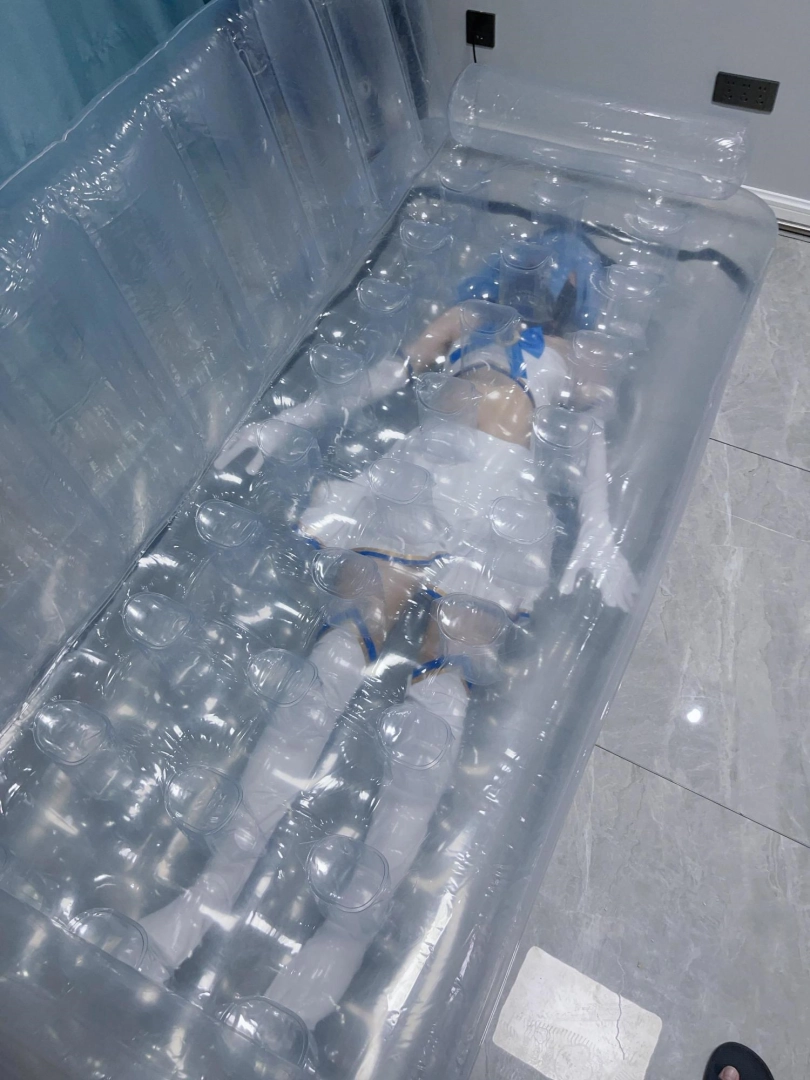 可怜的露娜酱就这样被封印在透明的充气沙发里,忍受着闷热、缺氧和充气拘束的压迫感,被人使用着。