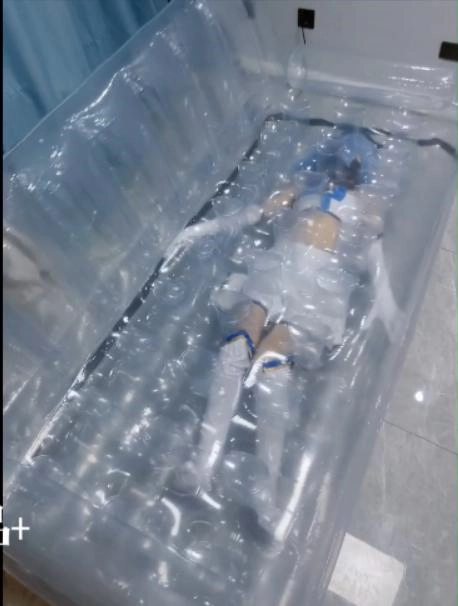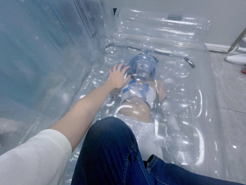为了增加拘束效果,进去之后还补了气,满满的充气压迫~