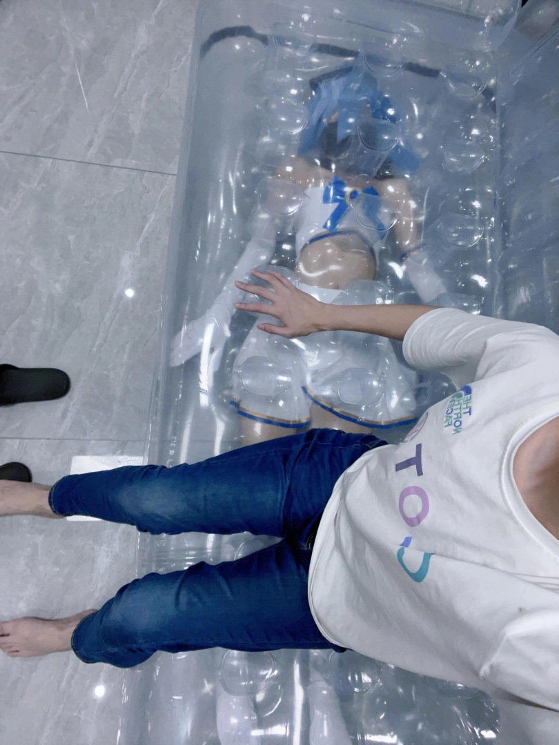 趴在软软的充气沙发上,能看到透明材质下封印着一个娇小可爱的魔法少女。隔着透明沙发抚摸少女的身体少女也浑然不知,只能默默承受人的体重压在自己身上。
