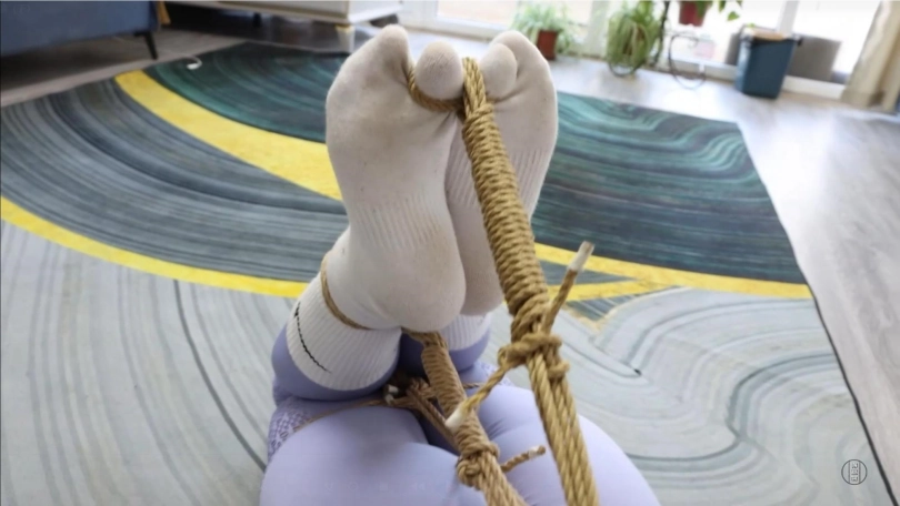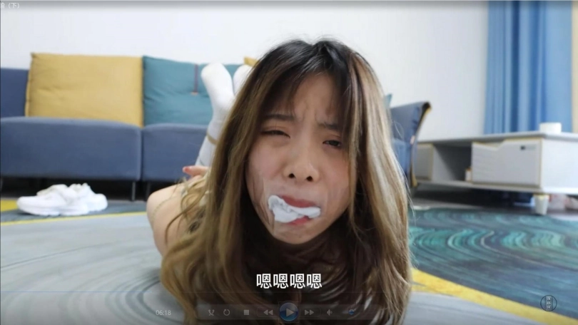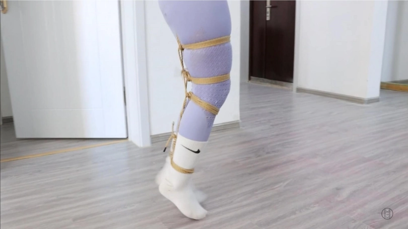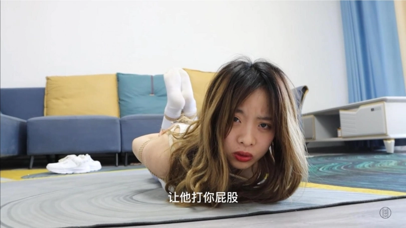 娜娜费劲千辛万苦终于找到了一把剪刀,可在她拿到剪刀的一瞬间,小杰从她手里将剪刀夺走。为了防止美丽调皮的娜娜老师再次想办法逃走,小杰将娜娜牢牢地绑成了驷马束缚。娜娜扭动着身体,发现自己再也无法站起身蹦跳,也无法挣脱身上的绳子。她能做的,只是威胁小杰给她松绑,否则将会告状。娜娜的威胁激怒了小杰,他用袜子堵住了娜娜的嘴,并且用透明胶带把娜娜的嘴巴封死,这样,娜娜老师就没办法说话,也不能威胁到他了。被强行堵上嘴的娜娜非常愤怒,她不停地呜呜呜叫着,扭动着身体想要挣脱绳子的束缚,可是无论她怎么努力,也无法摆脱被捆绑和被堵嘴的命运。更糟糕的是,小杰意识到了娜娜穿着白袜的脚还有一定的活动空间,所以他用另外一根绳子,将娜娜的大脚趾隔着白袜绑在一起,并且拉紧连接到上半身。这样,娜娜的白袜脚只能保持绷直的状态。可怜的娜娜老师现在已经被绑得动弹不得,但是她还是很努力地在地上蠕动,企图朝着大门的方向移动。终于,过了很长一段时间,家长回家了。家长开门的一瞬间就看到被绑成粽子趴在地上的娜娜。他连忙把娜娜的嘴松开,问是不是有贼闯进了家中。娜娜委屈地说自己是被小杰绑成这样的,暴怒的家长立马冲进房间去收拾小杰,他好像忘了一件什么事——我们可爱的娜娜老师,依然还被绳子紧缚着,她扭动着身子在地上大声呼喊着,能不能先帮自己松绑......