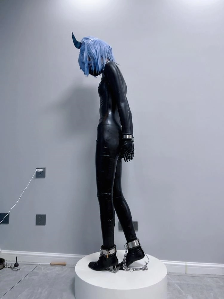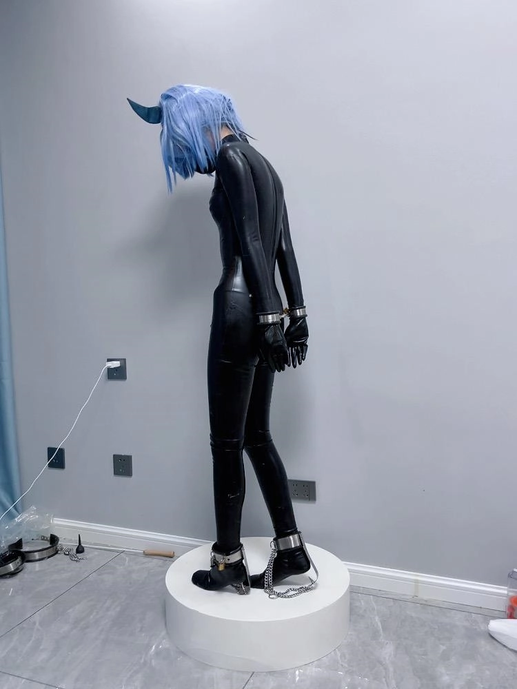 可怜的魔法少女就这样穿上羞耻的胶衣,双手被反铐在身后,艰难的维持着平衡。最要命的是脚底的尖刺镣铐,只要稍微维持不了平衡冰冷的尖刺就会狠狠刺痛脚底。这可是真正的刑具,一刺下去不受伤是不可能的。少女只能羞耻的站在收藏用的手办台上,被冰冷的刑具强制接受踮脚的惩罚,疯狂的压榨着少女的体力.....