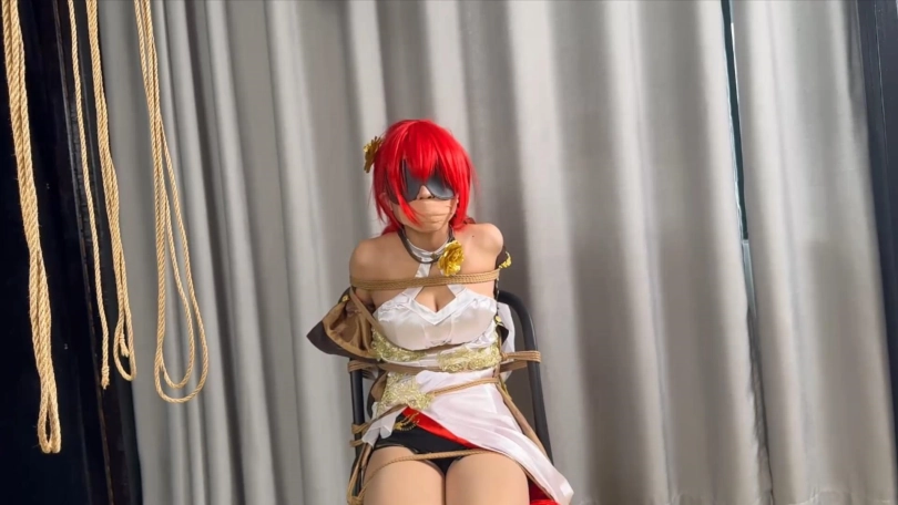 【象人】小0-姬子cos,多胶带封嘴,椅缚挣扎!