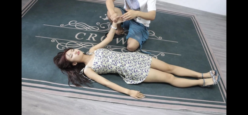 小哥骑车撞晕妹子,却把妹子带回家玩弄。涉及元素有昏迷、裸足、高跟凉鞋、摆弄、翻眼皮、公主抱等。